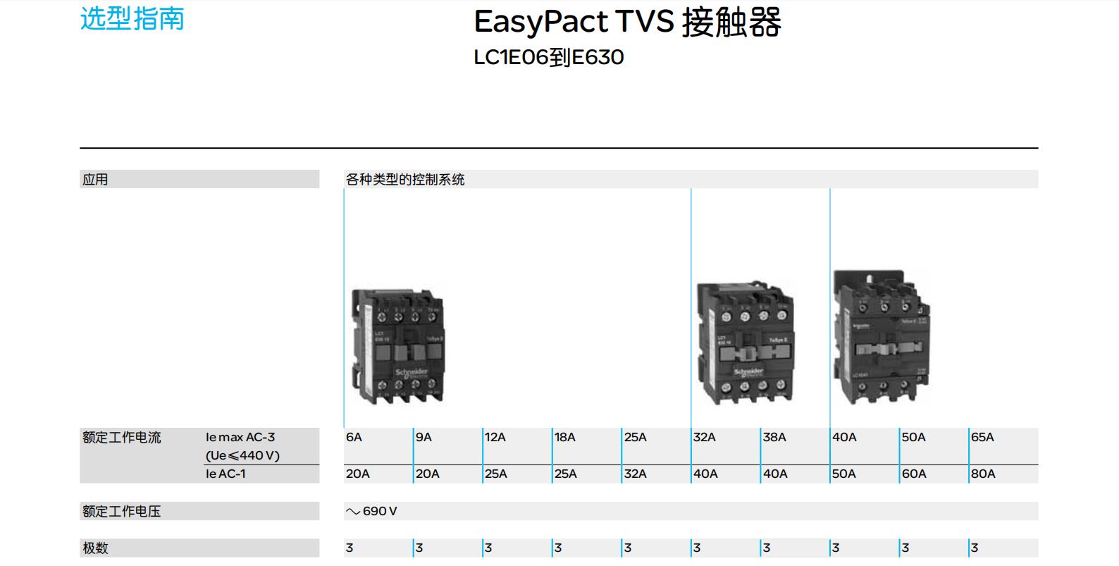 施耐德EasyPact TVS LC1E系列4极接触器LC1E80004M7N LC1E95004M7N