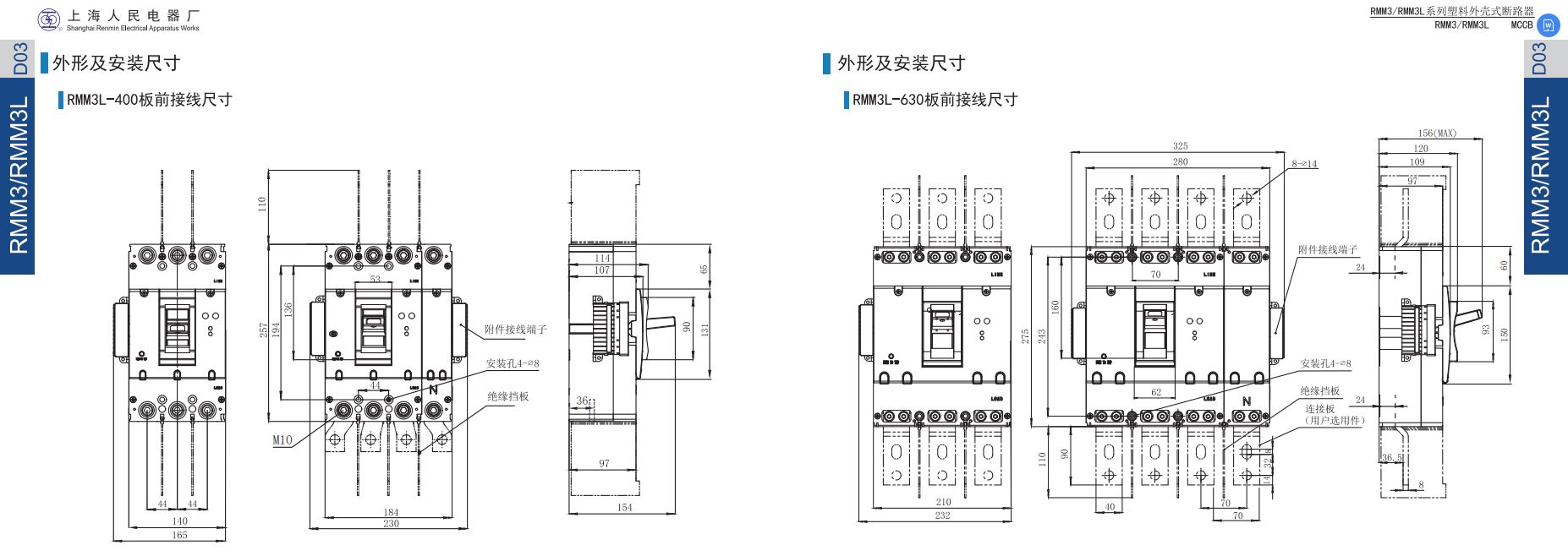 上海人民RMM3L系列剩余电流保护塑料外壳断路器RMM3L-400L/3300 400A 3P/4P